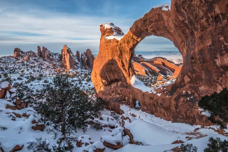 Arches National Park is even more stunning under a blanket of snow. NPS/Kait Thomas