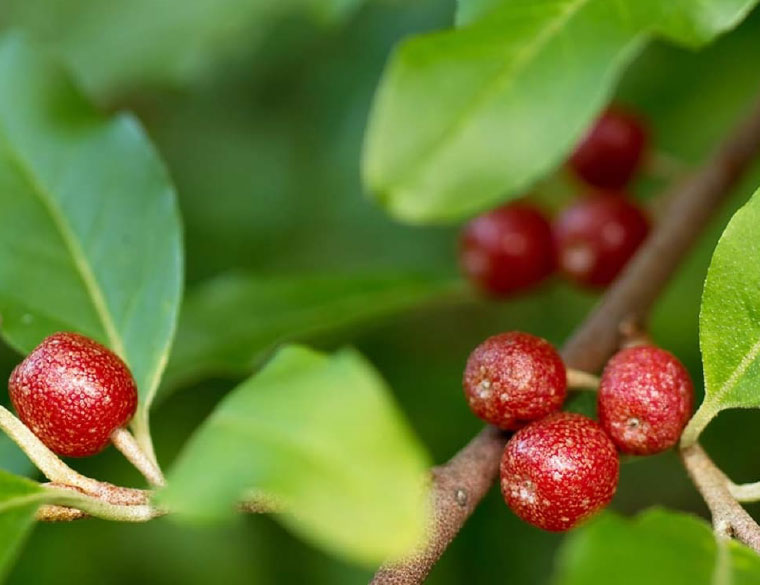 From early October and into November, the prolific fruit of the autumn olive is relished by many birds, mammals and (for those in the know) people. There is a seed in the center of the fruit, so most people cook the berries for 30 minutes before creating a puree that makes for easy seed separation. Autumn olive is rich in lycopene which is thought to reduce the risk of prostate cancer.