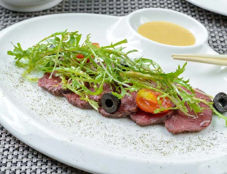 Grilled beef with prepared dandelion salad. Pavel Kibenko/Alamy